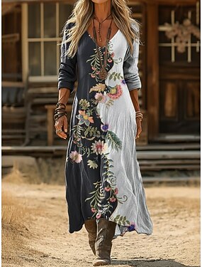 kvinnors boho klänning blommig v-ringad maxi klänning vintage klänning tryck klänning mode modern sommar våren