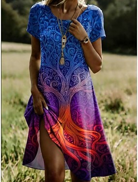 Dam Mini klänning T shirtklänning A linjeklänning Sommarklänning Ledigt Strand Helgdag Normal Blommig Grafisk Kortärmad Rund hals Blå Purpur Grön Mörkblå Sommar Vår