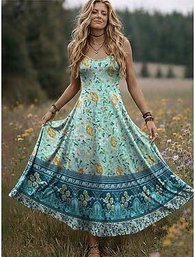 Mardi gras Dam Maxiklänning Vardagsklänning Swingklänning Sommarklänning Boho-klänning Vintage Strand Normal Blommig Grafisk Ärmlös Rund hals Rodnande Rosa Purpur Grön Sommar Vår