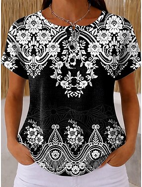 Dam T-shirt Mönster Grafisk Geometrisk Paisley Vintage Stylish Ledigt Kortärmad Rund hals Långa toppar Dagligen Helgen Rodnande Rosa Sommar Vår