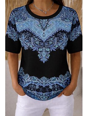 Dam T-shirt Mönster Grafisk Paisley Vintage Stylish Klassisk Kortärmad Rund hals Vanliga toppar Dagligen Helgen Standkläder Blå Grön och Blå Grön Sommar Vår Höst