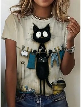 Dam T-shirt Mönster Grafisk Djur Bokstav Vintage Stylish Klassisk Kortärmad Rund hals Vanliga toppar Dagligen Helgen Blå Rodnande Rosa Kaki Sommar Vår Höst Vinter