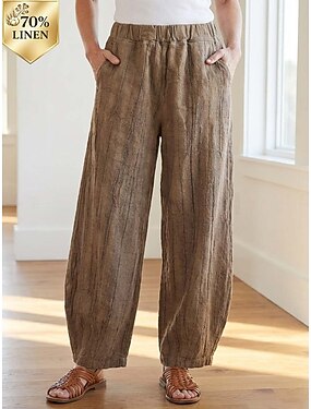 Dam Konstbomullslinne Långbyxor Sommarbyxor Strandbyxor Semester Mode Grundläggande Fullängd Hög midja Slät Ficka Rakt ben Komfort Utomhus Microelastisk Dagligen Strand Helgdag Mörkgrön Svart Vit