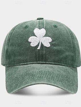 Herr Basebollkeps Svart Vit Bomull Broderi Ledigt Ledigt Dagligen Saint Patrick Day Ensfärgat Vitklöver Sol Solskydd