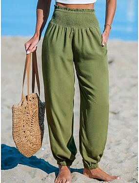 Dam Konstbomullslinne Joggare Långbyxor Casual byxor Semester Mode Streetwear Fullängd Hög midja Slät Ficka Elastisk midja Komfort Oelastisk Dagligen Semester Gata Svart Rodnande Rosa Rubinrött