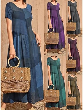 Dam Maxiklänning Konstbomullslinne Boho-klänning Vardagsklänning Vintage Mode Modern Utomhus Semester Utekväll Normal Geometrisk Kortärmad Rund hals Blå Rubinrött Vinröd Purpur Sommar Vår