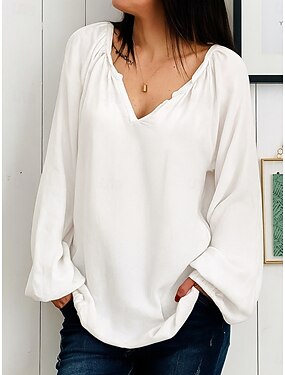 Dam Skjorta Blus Skjorta i konstlinne Slät Vintage Klassisk Modern Långärmad V-hals Vanliga toppar Dagligen Helgdag Utekväll Blå Vit Rodnande Rosa Grå Sommar Vår