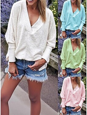 Dam Blus Skjorta i konstlinne Ensfärgat Vintage Stylish Ledigt Långärmad V-hals Vanliga toppar Dagligen Blå Vit Rodnande Rosa Grön Vår Höst