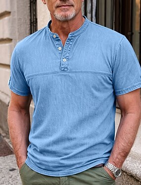 Herr Pikétröjor Tvätta skjorta i 100 % bomull Ledigt Helgdag Kavajslag Henley Kortärmad Mode Grundläggande Slät Årgång Bedrövad Sommar Vår Alla årstider Normal Mörkbrun Svart Ljusgrön Rodnande Rosa