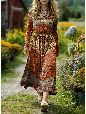 Set bohemliv Retro / vintage Boho Klänningar Ärmlös Hippie Disk Paisley Bohemisk Maskeradkläder Dam Maskerad musikfestival Retro-temafest Vuxna Klänning Sommar
