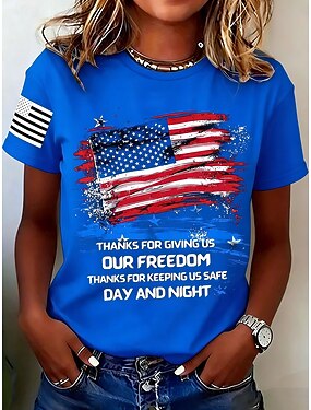 Amerikanska självständighetsdagen Dam T-shirt Mönster Grafisk Flagga Bokstav Vintage Mode Stylish Kortärmad Rund hals Vanliga toppar Ledigt Dagligen Helgen Blå Vit Vit 2 Sommar Vår Höst