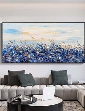 stor handgjord 3D-oljemålning med skog handgjord abstrakt blomoljemålning på duk stor väggkonst minimalistisk blå blomkonstmålning specialmålning boho väggdekor för vardagsrum