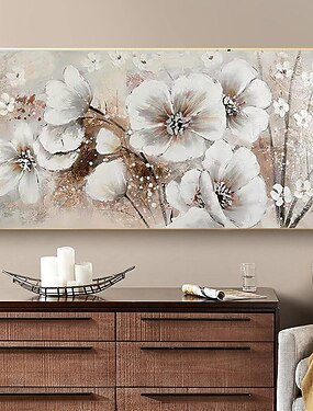 handgjord handmålad oljemålning väggkonst vit blomma oljemålningar heminredning dekor rullad duk utan ram osträckt