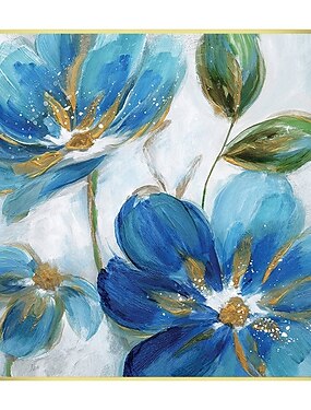 handgjord handmålad oljemålning väggkonst blå blommor heminredning dekor rullad duk utan ram osträckt