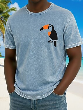 Herr Papegoja Hawaii T-shirt Mineraltvätt-T-shirt Kortärmad T-shirt Syratvätt Rund hals Skjorta Vintage retro Ledigt Strand Resor Blå Purpur Grå Sommar Vår Kläder M L XL 2XL 3XL