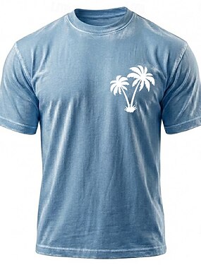 Herr Kokosnötspalm T-shirt Mineraltvätt-T-shirt Kortärmad T-shirt Syratvätt Rund hals Skjorta Semester Vintage retro Ledigt Strand Resor Blå Purpur Grå Sommar Vår Kläder M L XL 2XL 3XL