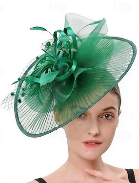 Huvudbonad Tyg Fedora Hatt Bröllop Hästhoppning Elegant Vintage Söt Med Fjäder Blommig Huvudprydnad Huvudbonad