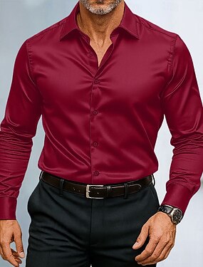 Herr Skjorta Silkesliknande Satinskjorta Casual skjorta Knapp upp skjorta Balskjorta Slät Bröllop Dusch Svart Vit Rubinrött Kungsblå Långärmad Kavajslag Vår & Höst Alla årstider Kläder