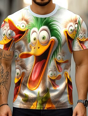 Herr 3D Rolig Anka T-shirt Kortärmad T-shirt 3D-tryck Rund hals Skjorta drivna Designer Fest Helgdag Vit Sommar Vår Kläder S M L XL XXL XXXL