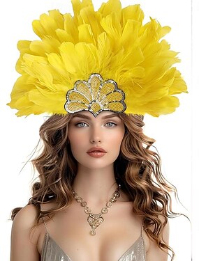 Karneval 2026 Rio Karneval Samba Tillbehör Karneval Fjäder Huvudbonad för Kvinnor - Gul Paljett Kostym Huvudprydnad - Mardi Gras Festival Showgirl Hår Tillbehör Brasilien Festival Framträdande Kostym