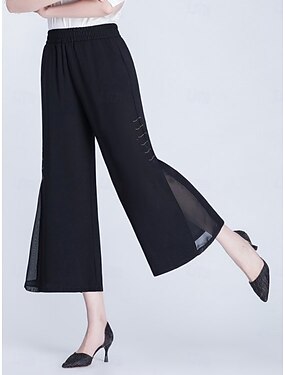 Dam EU / US-storlek Palazzo byxor Ledigt vardag Fullängd Hög midja Solid färg Stövelben Bekväm Oelastisk Ledigt Utekväll Grågrön Kamel Aprikos Svart Alla årstider Normal