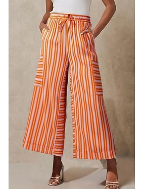 Dam Brett skaft Kinesiska Semester Mode Streetwear Fullängd Medium Midja Rand Ficka Elastiskt midjeband Tryck Bekväm Komfort Mjuk Elastisk Utomhus Strand Gata Militärgrön Svart Ljusgrön Orange Sommar