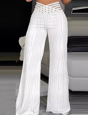 Dam Långbyxor Sommarbyxor Strandbyxor Semester Mode Ledigt vardag Fullängd Hög midja Ensfärgat Slät Snörning Spets Brett skaft Komfort Snabb tork Mjuk Oelastisk Streetwear Strand Helgdag Svart Vit