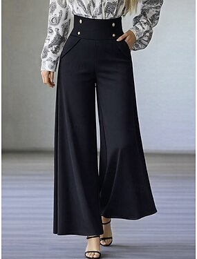 Dam Brett skaft Kostymbyxor Mode Streetwear Fullängd Naturlig Slät Ficka Elastisk midja Bekväm Företag Kontor Arbete Svart Beige Kaffe Höst Normal