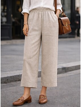 Dam Byxor av linne i bomull Byxor Sommarbyxor Säckiga byxor Fast Klassisk Ankellång Medium Midja Ficka Opressade byxor Elastisk dragsko-design Komfort Mateial som andas Mjuk Microelastisk Ledigt