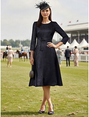 A-linje Telång Festklänning Cocktail klänning Bröllopsgästklänning Klänning till brudens mor Långärmad Rund hals Elegant Vintage Formell Formell kväll Bröllopsfest med Broderad