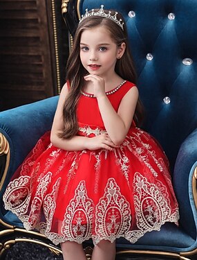 Brudnäbbsklänning Flickor Högtidlig klänning Bröllopskläder Fest Bröllop Formell Förtjusande Prinsessa Skön Lappverk Broderad Blommig Ärmlös Rund hals Svart Champagne 4 år +