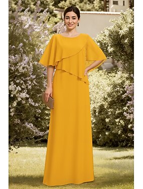 A-linje Golvlång Ankellång Festklänning Cocktail klänning Bröllopsgästklänning Klänning till brudens mor Kortärmad Över axeln Elegant minimalist Formell Bröllopsgäst Satäng med Enfärgat