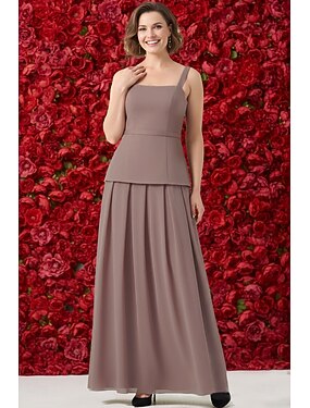 Jumpsuits Golvlång Klänning med overkjol Klänning till brudens mor Ärmlös Enaxlad Elegant Enkel Bröllopsgäst Formell kväll Satäng med Bälte / band