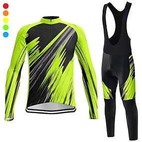 Herr Cykeltröja med Haklapp-tights Långärmad Bergscykling Vägcykling Vinter Höst Gul Rubinrött Blå Grafisk Cykel 3D Tablett Snabb tork Bakficka Fuktabsorberande Andningsfunktion Elastan sporter Kläder