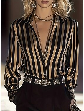 Dam Skjorta Button Down skjorta Casual skjorta Knappar Geometrisk Stylish Klassisk Modern Långärmad Tröjkrage Vanliga toppar Dagligen Arbete Helgdag Svart Brun Kaki Sommar Vår