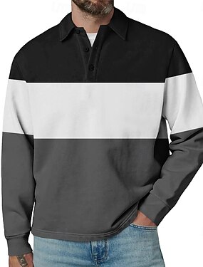 Herr Horisontella Strips Rugby Polo Långärmad Polotröjor Skjortor med krage Sportkläder Ledigt Skola Utomhus Fritids- 3D-utskrift Vår Höst Vinter Blå Brun Grå
