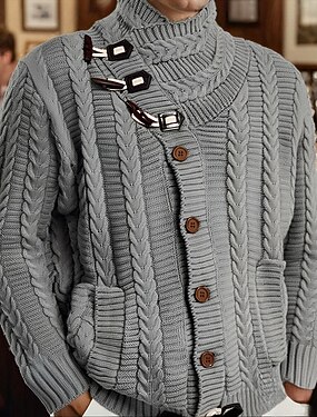 Herr Lappverk Tröja Etnisk Vintage retro Långärmad Hög hals Utomhus Utomhussport Resor Blå Brun Grön Knappar Höst Vinter Designer S M L XL XXL 3XL