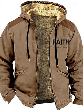 Herr Huvtröja Huvtröja med dragkedja Sherpa Fleece Hoodie Brun Huva Färgblock Bokstav Snörning Dragkedja Lappverk Sport & Utomhus Dagligen Helgdag Polyester Streetwear Grundläggande Ledigt Vinter