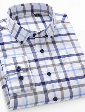 Herr Skjorta Button Down skjorta Oxford skjorta Rutig skjorta Skjorta med krage Pläd / Rutig Dagliga kläder Företagskläder Mörk marin Marinblå Blå Grön Långärmad Tröjkrage Alla årstider Kläder Spänne