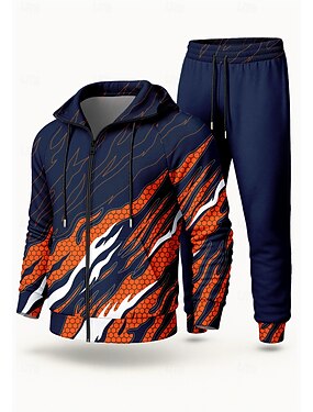 Herr Huvtröja Träningsoverall 2-delad träningsoverall Snörning Dragkedja Geometrisk Träningsdräkter Höst Vinter Orange Yrke Utomhus Resor Lättvikt Mode Långärmad Sport Sportkläder Elastisk Normal