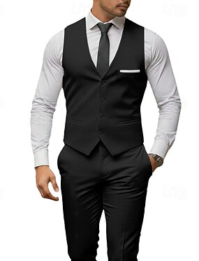 Herr Linnekostymer Strandbröllop Fest Svart Vår, Höst, Vinter, Sommar Kostym Hakslag Mode Dagligen Solid färg Standardpassform 2 delar set Singelknäppt Två knappar
