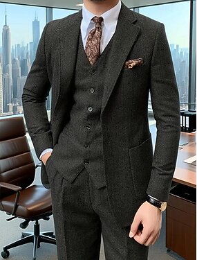 Herr Tweeddräkter Ledigt Företag Svart Brun Höst vinter Kostym Hakslag Dagligen Formell Fiskben Skräddarsydd passform 3 delar set Singelknäppt Två knappar
