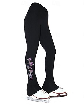 Konståkningsbyxor Dam Flickor Skridskoåkningsbyxor Svarta Stretchiga Träningskläder Tävlingskläder Termiska Varma Kristaller/Stenbågar Konståkning