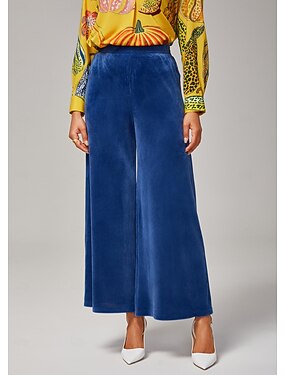 dambyxor med vida ben, avslappnad, hög stretchig manchester, ribbad textur, elastisk midja, blå elastan