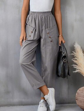 Dam Capribyxor Byxor Streetwear Ledigt Vadlängd Naturlig Slät Ficka Elastisk dragsko-design Utomhus Bekväm Gata Utekväll Grå Marin Svart Vit Sommar Normal