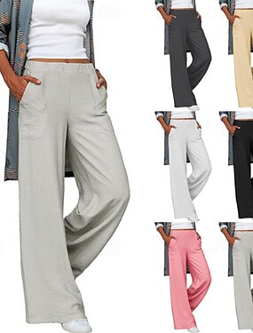 Dam Brett skaft Kinesiska Semester Mode Streetwear Fullängd Medium Midja Slät Elastisk midja Bekväm Microelastisk Dagligen Utomhus Semester Svart Vit Gul Blå Sommar Vår Höst Vinter Normal