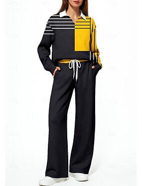 Dam Tröja Träningsoverall 2-delad träningsoverall Snörning Ficka Geometrisk Atletisk kläduppsättning Träningsdräkter Höst Vinter Gul Rosa Yrke Utomhus Resor Lättvikt Mode Långärmad Sport Sportkläder