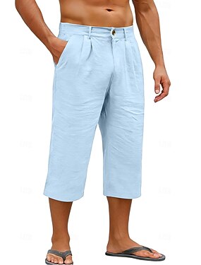 Herr Linne Byxor Capribyxor Sommarbyxor Ficka Elastisk midja Slät Komfort Andningsfunktion Vadlängd Dagligen Utomhus Helgdag Mode Klassisk Stil Blå 다크 카키 Microelastisk