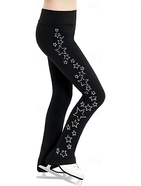 Konståkningsbyxor Dam Flickor Skridskoåkningsbyxor Svarta Stretchiga Träningskläder Tävlingskläder Termiska Varma Kristaller/Stenbågar Konståkning