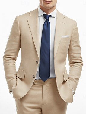 Herr Linnekostymer Strandbröllop Beige Vår, Höst, Vinter, Sommar Kostym Hakslag Mode Lättvikt Solid färg Standardpassform 2 delar set Singelknäppt 1 Knapp